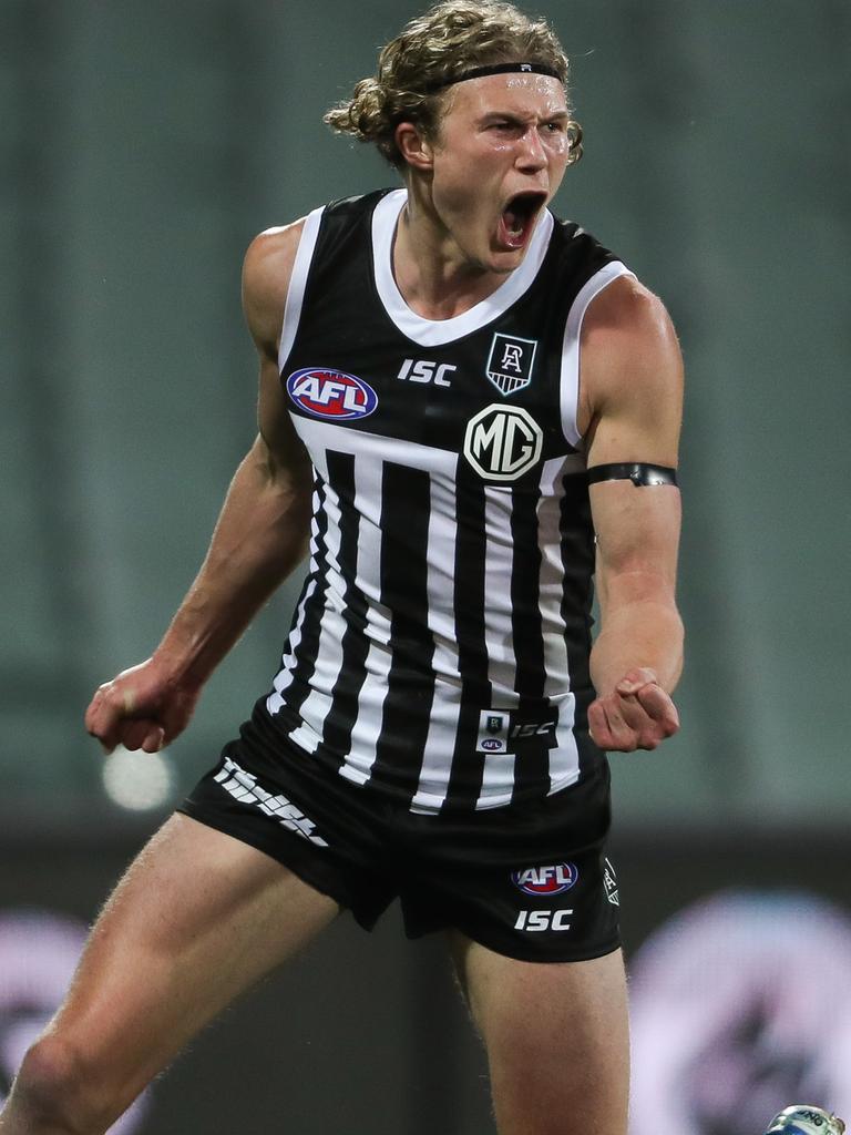 Eddie mcguire has responded after port adelaide responded to the afl's prison bar ban after their showdown win. Port adelaide betrayed the sanfls ambition to demand a fair and equal national competition. Inside the seemingly innocent photo of port adelaide players wearing the club's prison bar jersey in the locker room after their incredible win. "port adelaide signed an agreement with collingwood in 2019 to wear the prison bars guernsey in our 150th anniversary home showdown in 2020. "port adelaide signed an agreement with collingwood in 2019 to wear the prison bars guernsey in our 150th anniversary home showdown in 2020.